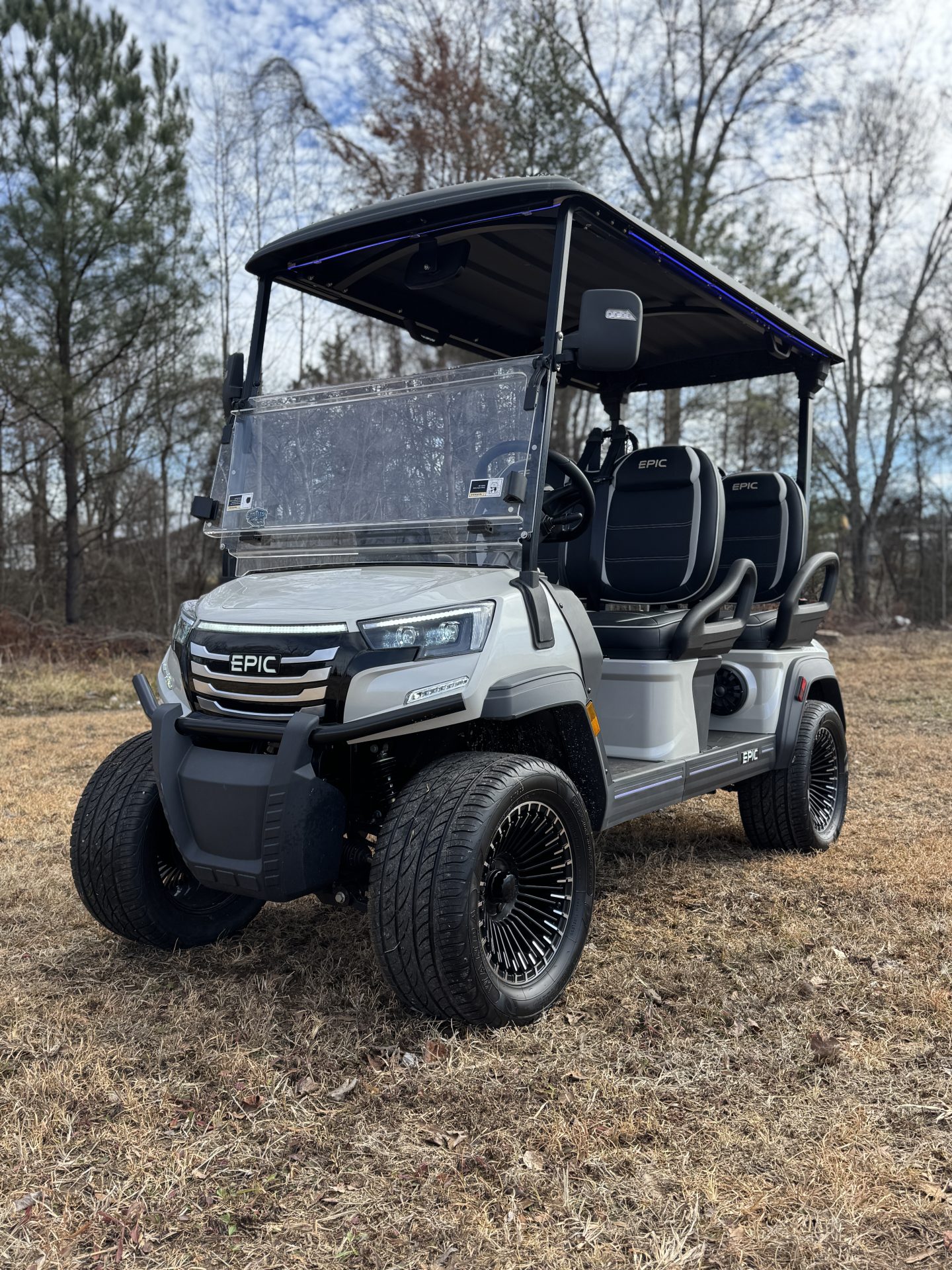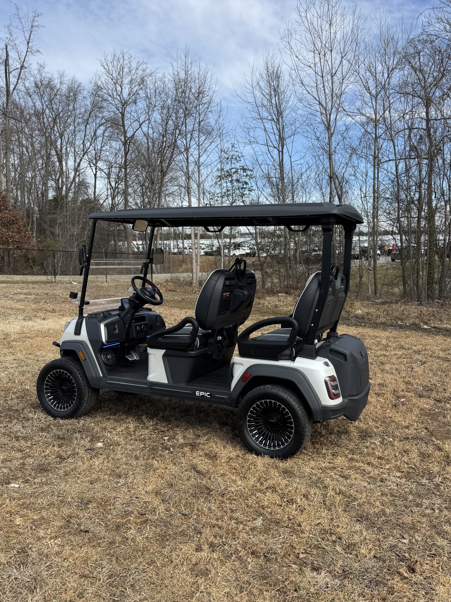 Introducing the 2026 Epic E40FX Golf Cart—a fusion of innovation, comfort, and style designed to elevate your golfing experience or leisurely rides around the neighborhood. This brand-new model is the epitome of modern elegance and advanced technology, crafted to meet the demands of today’s discerning drivers. At the heart of the E40FX is its cutting-edge Lithium-Ion power system, delivering a smooth and silent ride with impressive efficiency. Say goodbye to frequent stops for recharging and hello to extended playtime on the green or wherever your adventures take you. This power system not only ensures longer battery life but also reduces maintenance needs, allowing you to focus on enjoyment rather than upkeep. The Epic E40FX comfortably seats up to four passengers, making it perfect for family outings or social gatherings with friends. Its spacious interior is designed with premium materials, offering both ergonomic support and luxury. Whether you’re heading out for a day at the club or simply enjoying a sunset drive, you’ll do so in unparalleled comfort. Beyond its practical features, the E40FX boasts a sleek, modern design that turns heads wherever it goes. Its aerodynamic body, complemented by stylish accents, sets a new standard for what a golf cart can be—more than just a vehicle, it’s a statement. With the 2026 Epic E40FX, you’re not just purchasing a golf cart; you’re investing in a lifestyle of luxury and performance. Ready to make every journey an epic one? Step into the future of golf carts with the Epic E40FX—where every ride is a new adventure waiting to unfold.