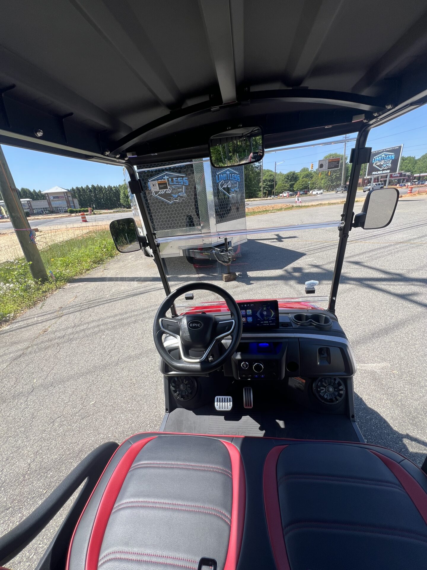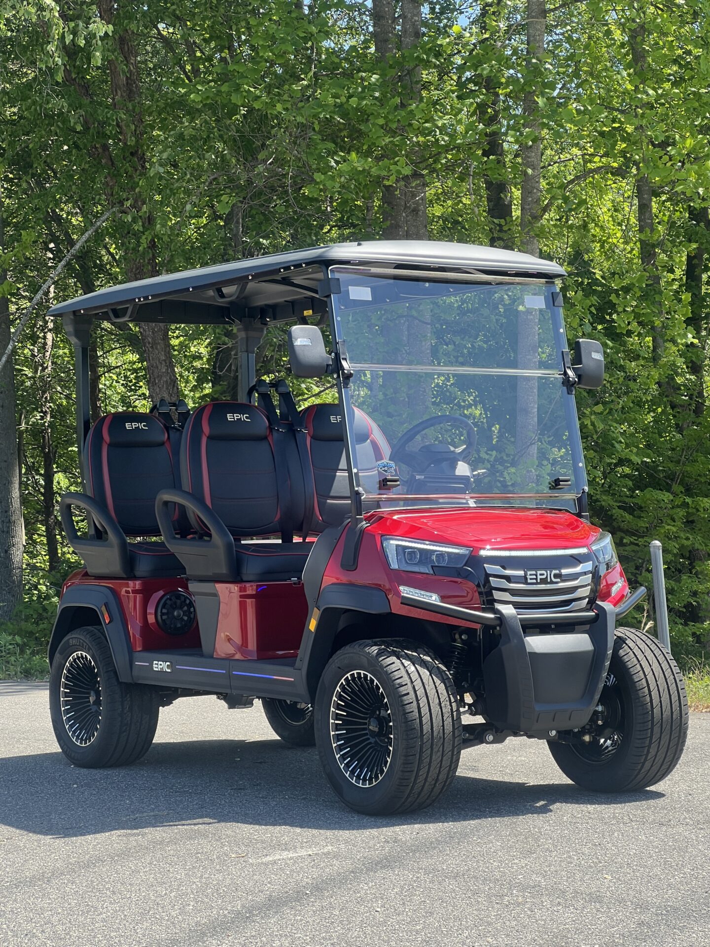The Epic E40FX is a premium 4-passenger golf cart designed to deliver power, comfort, and modern technology in one sleek package. It features a strong 6.3kW AC motor paired with a long-lasting 51V lithium battery, giving you smooth acceleration, excellent range, and virtually no maintenance. Built for real-world driving, it can reach up to 25 mph and handles hills with ease. Inside, it’s fully loaded with a large touchscreen display, Bluetooth sound system, backup camera, and convenient phone charging options. With LED lighting, 4-wheel disc brakes, and street-ready features, it offers both safety and style. Add in the comfortable seating, rear flip seat with storage, and premium overall ride quality, and the E40FX stands out as a high-end cart that feels more like a small luxury vehicle than a typical golf cart.