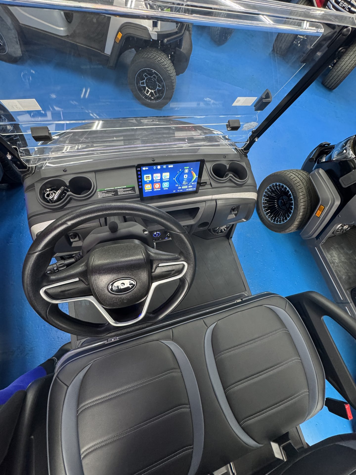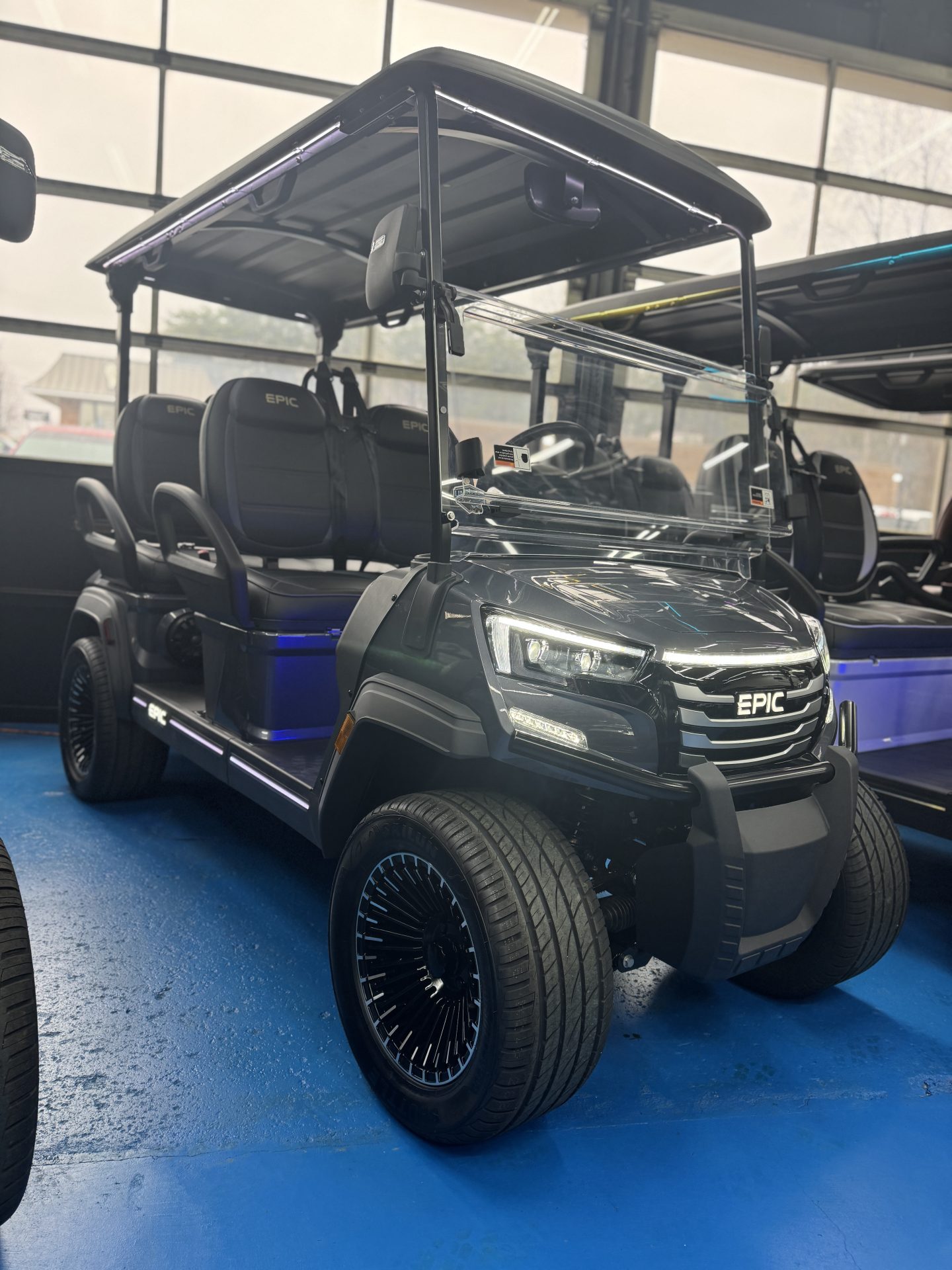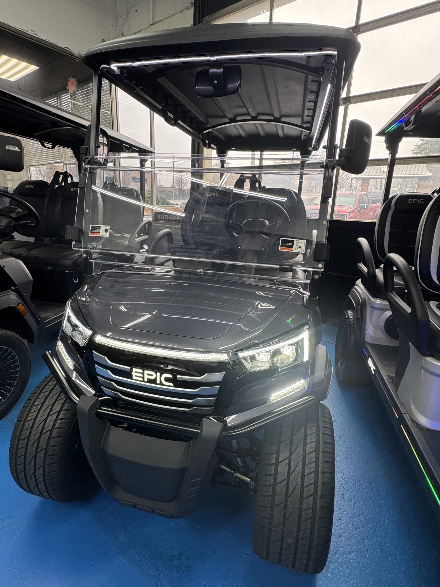 Discover the future of leisurely travel with the 2026 Epic E40FX Golf Cart, the perfect blend of cutting-edge technology and sleek design. This brand-new, state-of-the-art golf cart is powered by an advanced Lithium-Ion battery, ensuring you enjoy a smooth, efficient, and eco-friendly ride every time you hit the course or cruise around the neighborhood. Designed with both style and comfort in mind, the Epic E40FX boasts a spacious seating capacity for up to 4 passengers, making it an ideal choice for family outings or social gatherings. Its contemporary aesthetic is sure to turn heads, featuring a streamlined silhouette and modern accents that highlight its innovative engineering. Whether you’re navigating the fairway or exploring the local paths, the E40FX promises a whisper-quiet operation paired with nimble handling, allowing you to glide effortlessly to your destination. The responsive controls and robust build provide a secure and enjoyable driving experience, offering both seasoned golf enthusiasts and casual drivers a ride like no other. Experience the pinnacle of golf cart innovation with the 2026 Epic E40FX. It’s more than just a golf cart—it’s a statement of luxury and forward-thinking design. Ready to redefine your ride? The future is here, and it’s waiting for you.