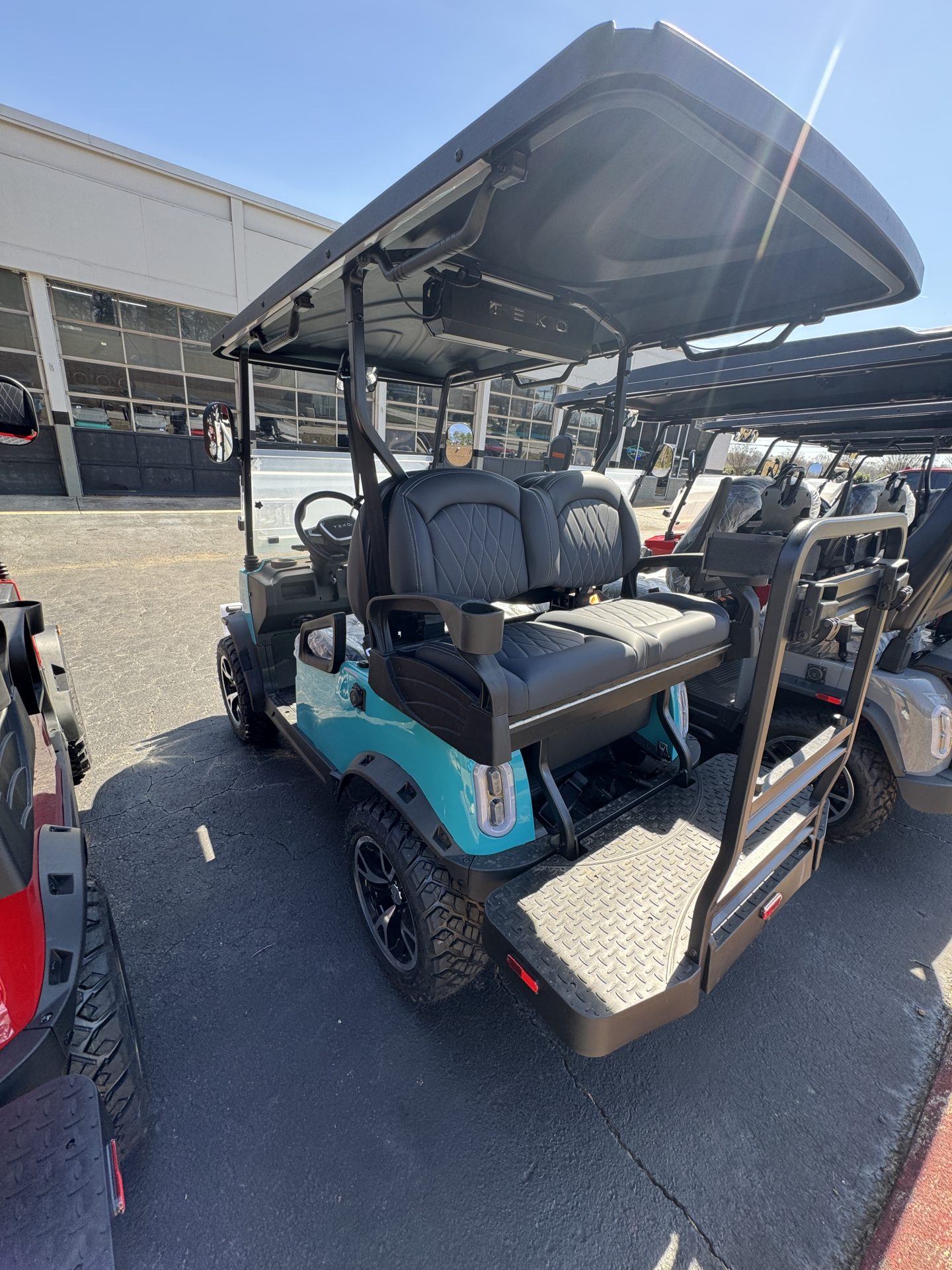 Introducing the 2026 TEKO Turbo Golf Cart, where cutting-edge technology meets sleek design to redefine your leisure and utility experiences. This brand-new model is powered by a robust Lithium-Ion battery, ensuring you enjoy longer rides with shorter charging times. Whether you’re navigating the fairways or cruising around the neighborhood, the TEKO Turbo offers a smooth and quiet ride with zero emissions. Designed to accommodate up to four passengers comfortably, this golf cart is perfect for family outings or a day on the course with friends. The spacious seating ensures everyone travels in style and comfort, with ample legroom and plush upholstery that underscores its luxurious feel. The TEKO Turbo’s modern aesthetic is complemented by its durable construction and attention to detail. Its aerodynamic body is not only visually striking but also enhances performance, allowing you to glide effortlessly over various terrains. Equipped with user-friendly controls and a digital dashboard, you can easily monitor your speed, battery life, and more, making every journey hassle-free. Safety is a top priority with the TEKO Turbo. It boasts advanced features such as LED headlights for better visibility, sturdy seat belts for all passengers, and a reliable braking system. Whether you’re a seasoned golf cart driver or new to the scene, you’ll appreciate the intuitive handling and responsive steering. Join the future of golf cart innovation with the 2026 TEKO Turbo, where every ride is an adventure in comfort and efficiency. Experience the perfect blend of technology and style in a vehicle that’s as versatile as it is fun. Don’t miss the opportunity to own the latest in golf cart excellence—it’s time to elevate your ride.